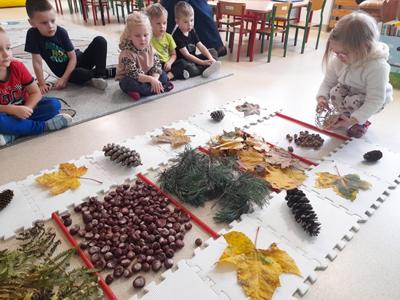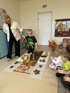 • Jesienne zabawy z chustą animacyjną w grupie Maki