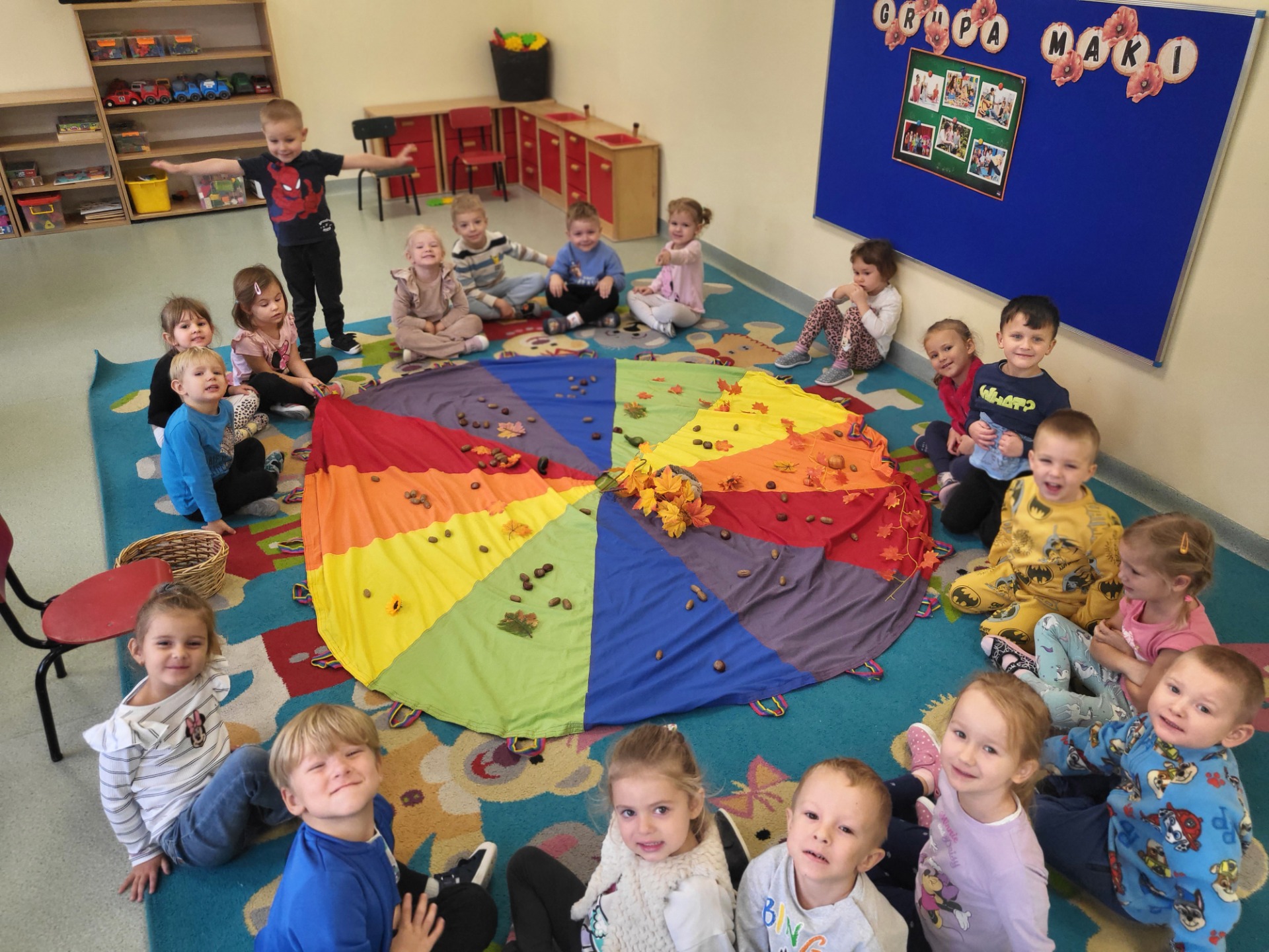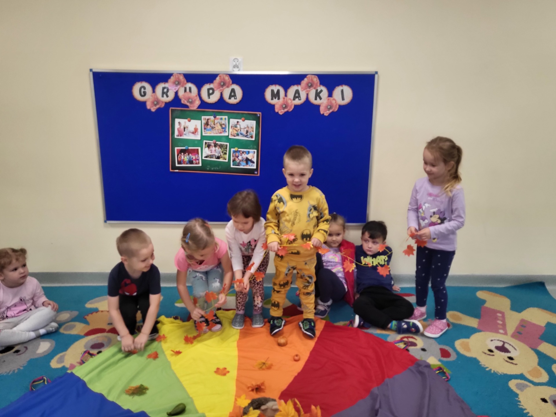 Jesienne zabawy z chustą animacyjną w grupie Maki