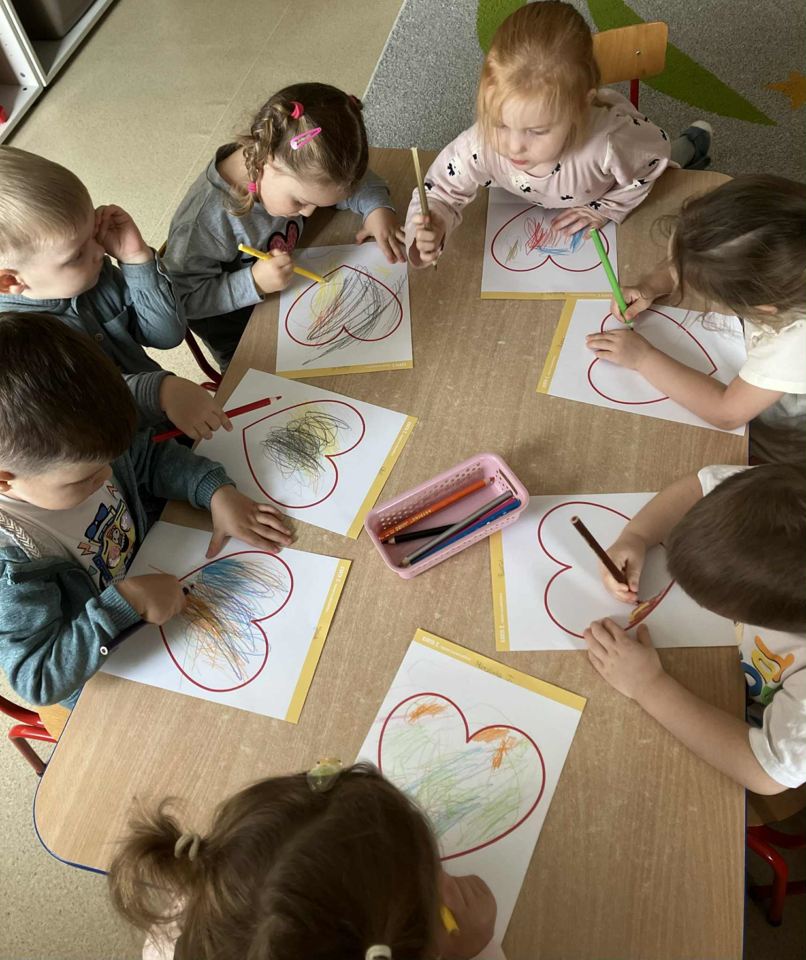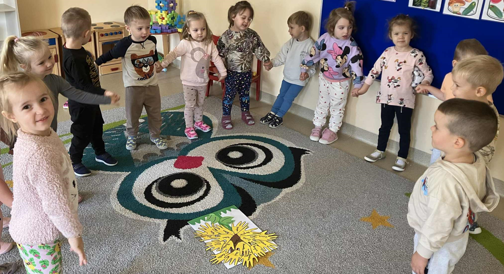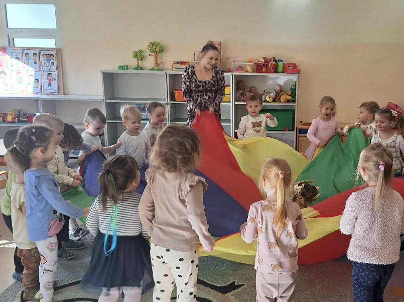 Październik upłynął Słonecznikom w atmosferze zabawy, muzyki i wspólnego działania. Dzieci z radością uczestniczyły w zajęciach z wykorzystaniem chusty animacyjnej, tańczyły i śpiewały przy wesołych piosenkach. Z okazji Święta Edukacji Narodowej przygotowały miłe niespodzianki, okazując wdzięczność i życzliwość swoim wychowawcom. Podczas zajęć plastycznych przedszkolaki zaprojektowały własne, wyjątkowe serca - pełne kolorów, emocji i dziecięcej wyobraźni. Październik był również czasem budowania przyjaźni, wzajemnego wsparcia i odkrywania radości ze wspólnej zabawy.