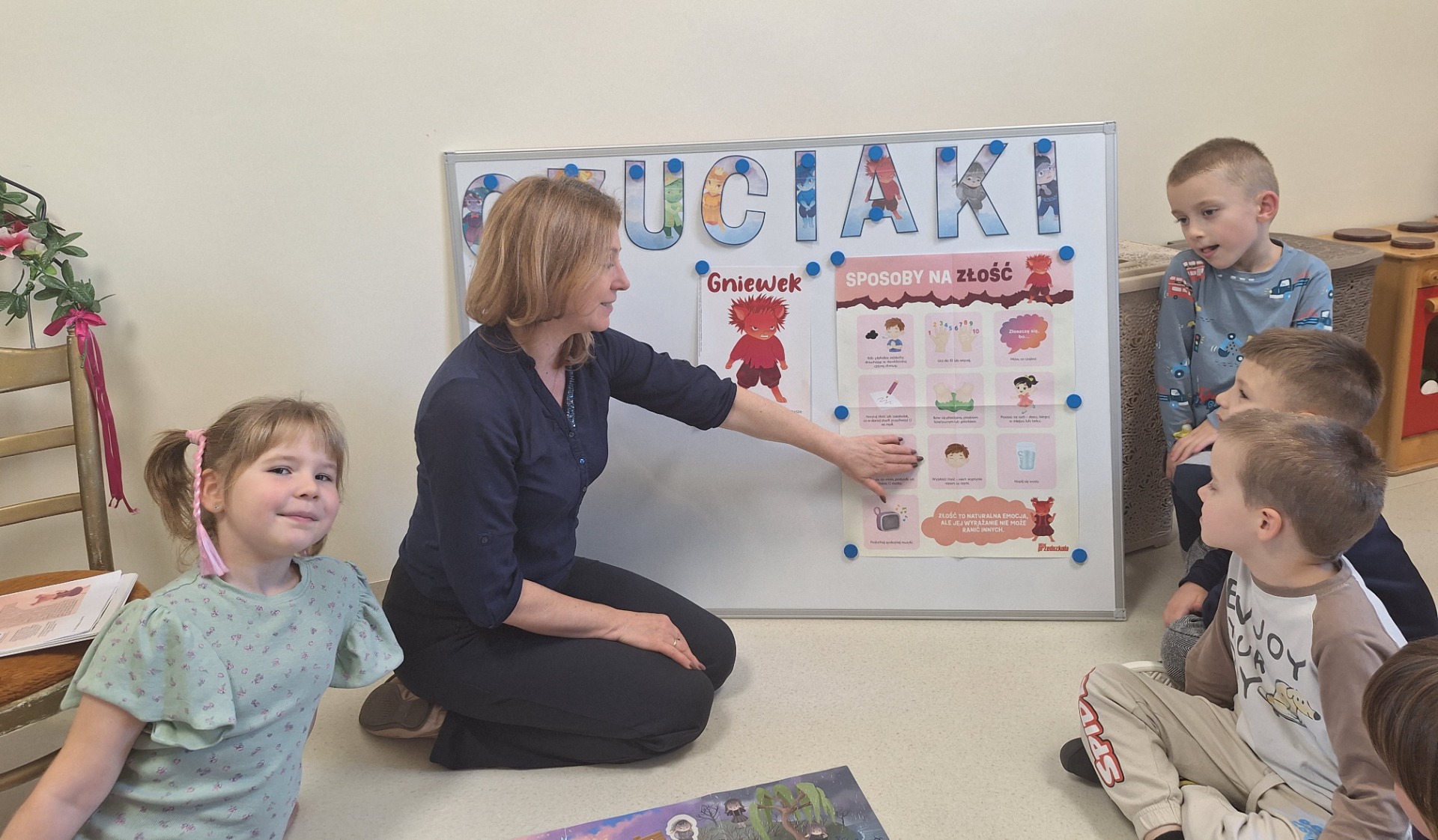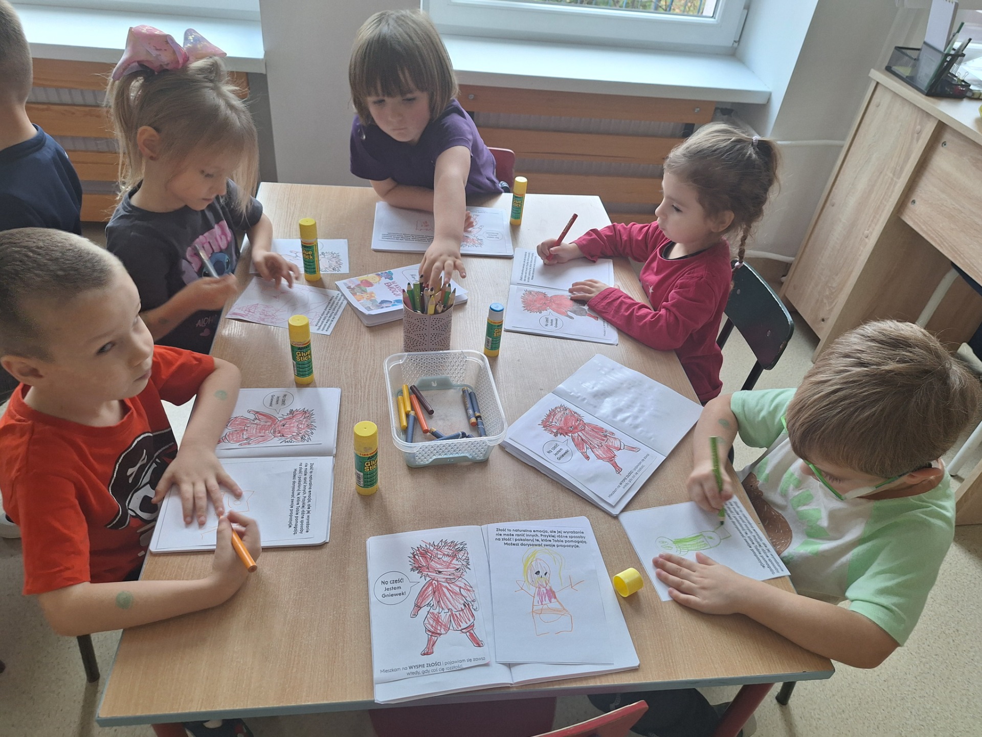 Dzieci poznały Gniewka z Wyspy Złości. Dowiedziały się kiedy pojawia się złość i jak można poradzić sobie z tą emocją w sposów bie raniący innych.