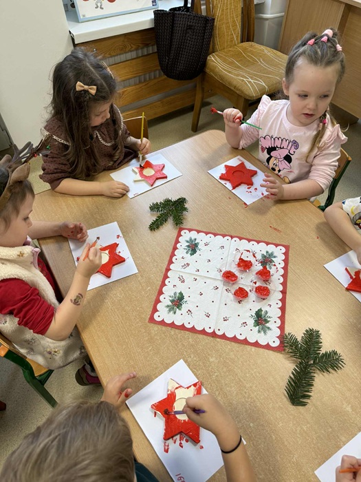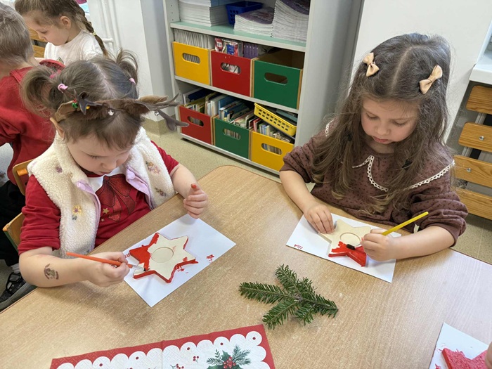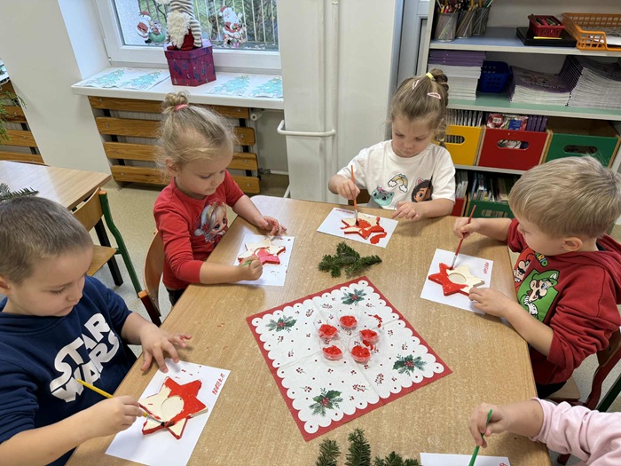 „Gwiazdka” - Warsztaty edukacyjne - malowanie drewnianych świeczników w grupie „Stokrotki”