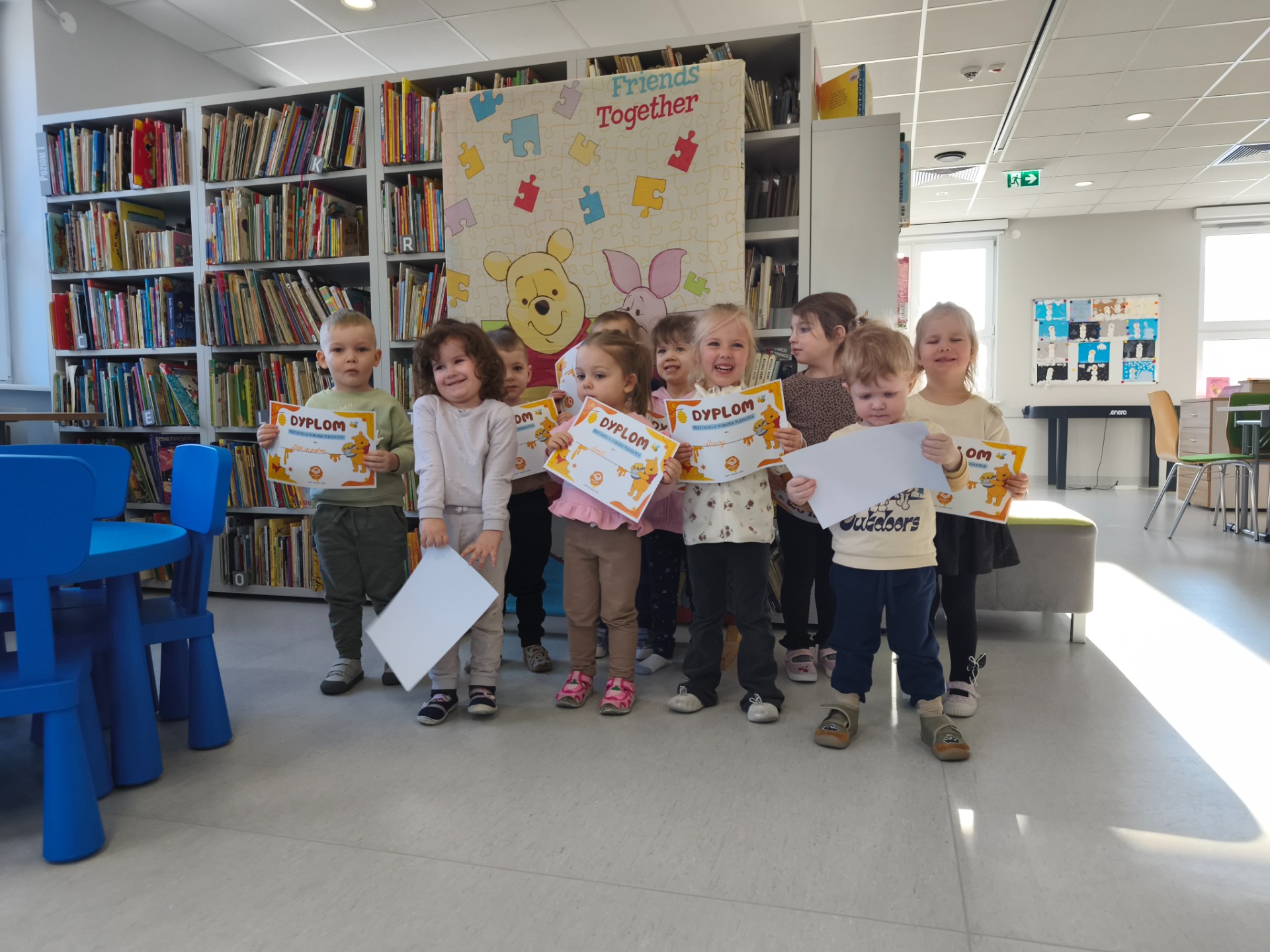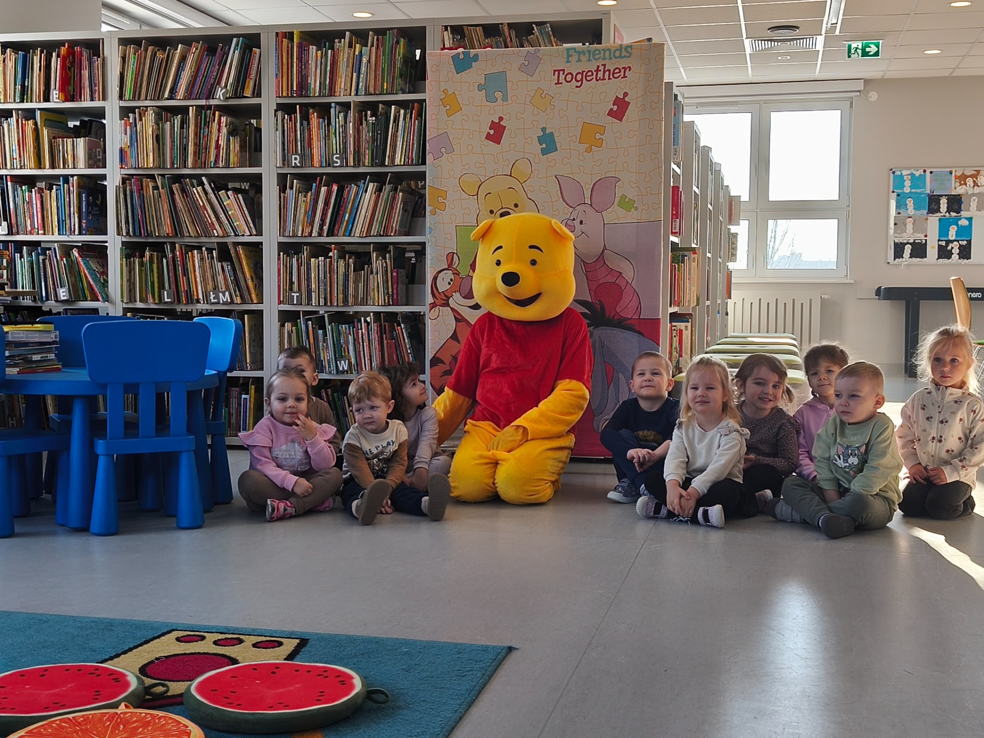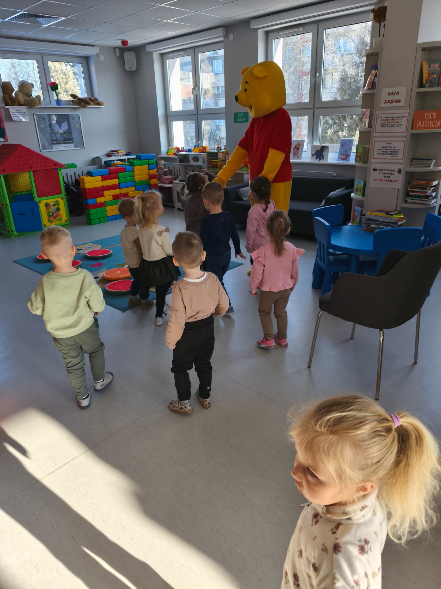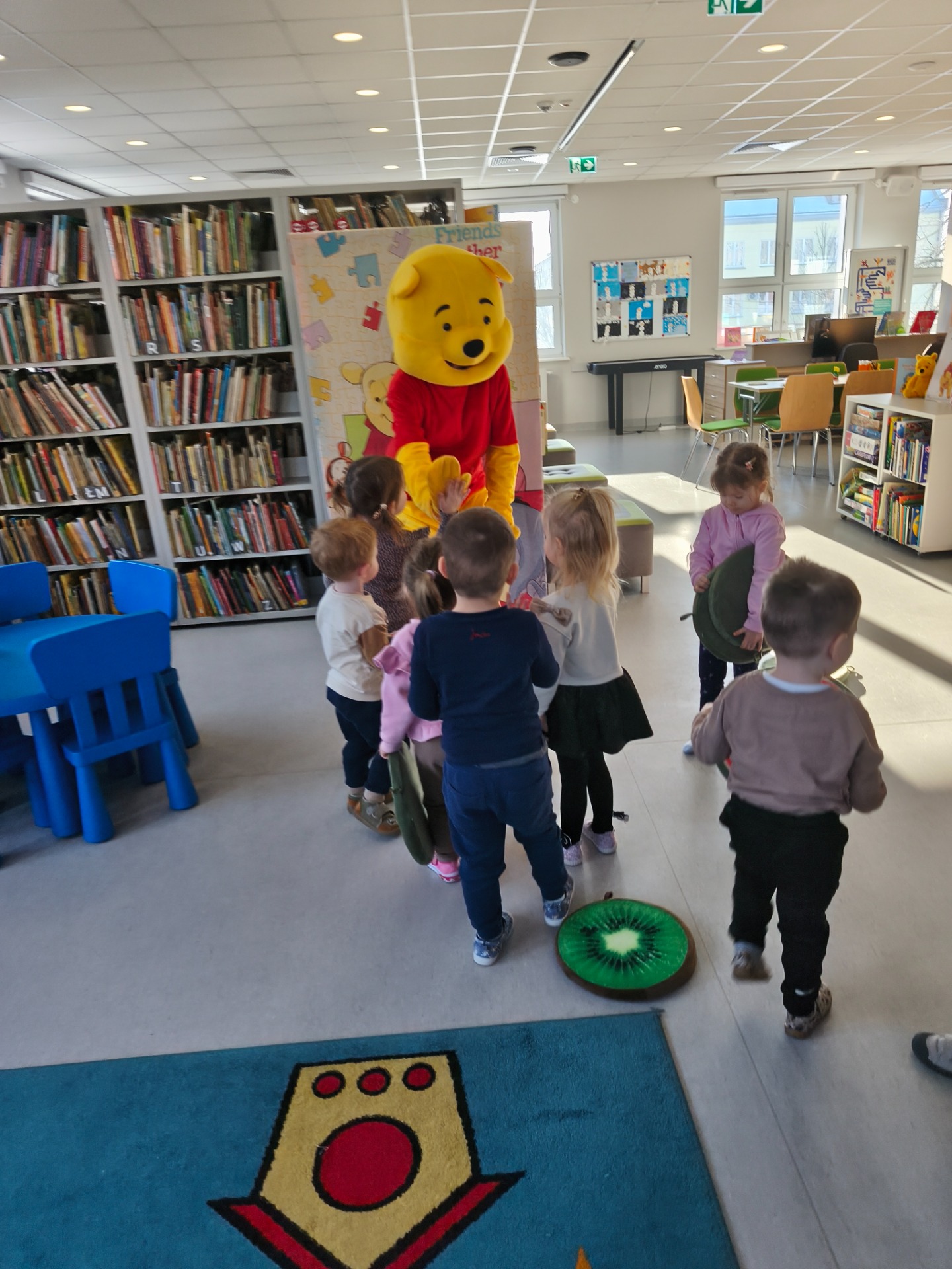 Dzieci z grupy Słoneczniki w dniu 20.01.2026 r odwiedziły Bibliotekę Publiczna z tej okazji nasze dzieci świętowały Dzień Kubusia Puchatka . Podczas spotkania dzieci czerpały radość ze wspólnej zabawy. Dzieci z zainteresowaniem słuchały opowiadania , brały udział w zabawach ruchowych oraz uczestniczyły w zajęciach plastycznych . Spotkanie upłynęło w miłej i radosnej atmosferze.
