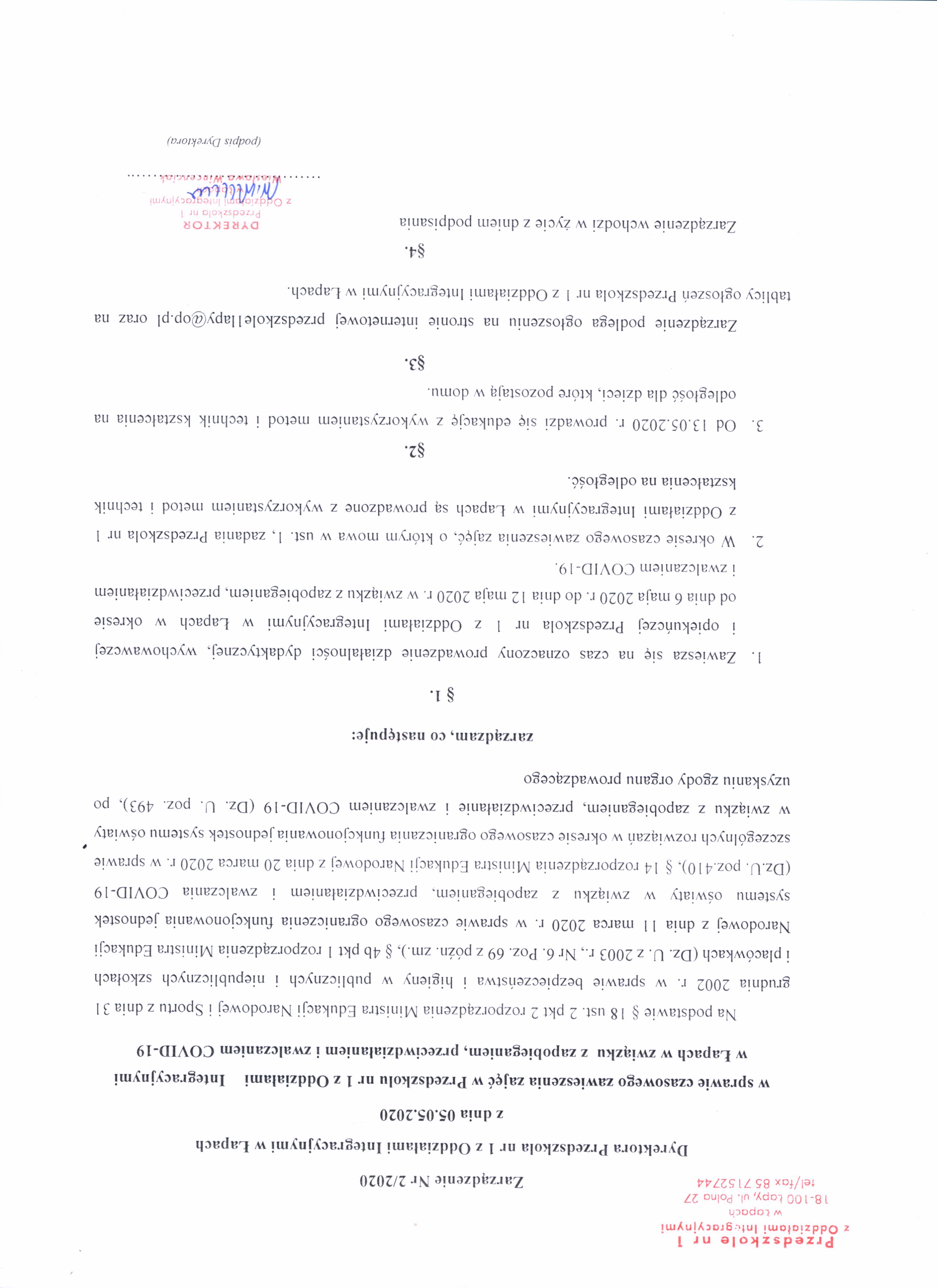 Drodzy rodzice prosimy o zapoznanie się z zarządzeniem:link poniżej
