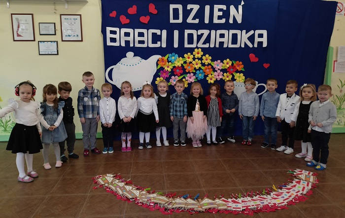Z okazji dnia Babci i Dziadka nasze przedszkolaki przygotowały przedstawienie w formie muzyczno- słownych wystąpień. W przepięknej scenografii przedszkolaki recytowały wiersze przeplatane wzruszającym śpiewem. Mali artyści z przejęciem prezentowali swoje umiejętności. Oczywiście nie zabrakło też własnoręcznie zrobionych upominków, które dzieci wręczyły swoim ukochanym Babciom i Dziadkom.