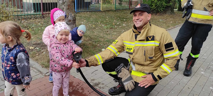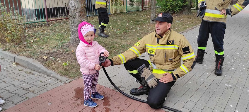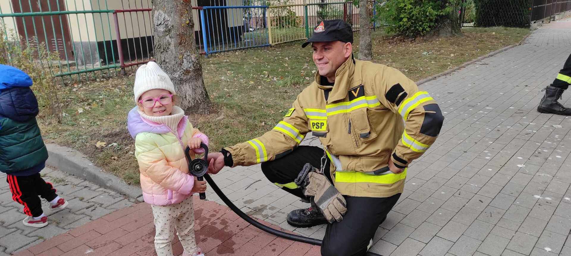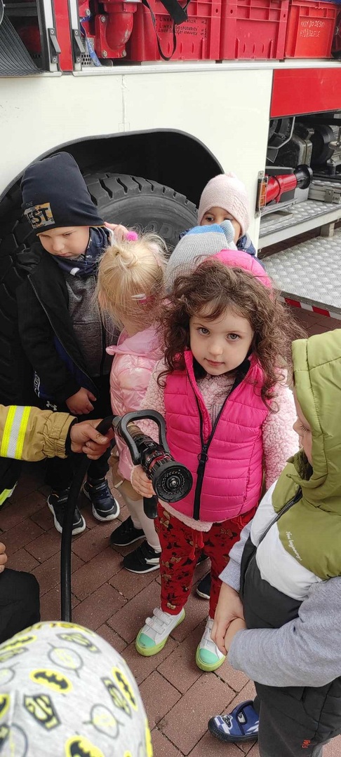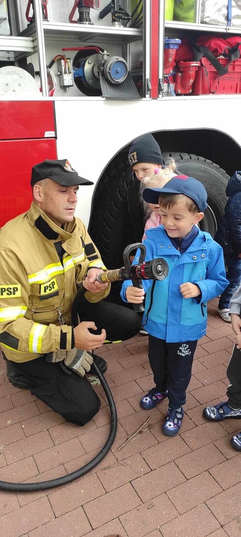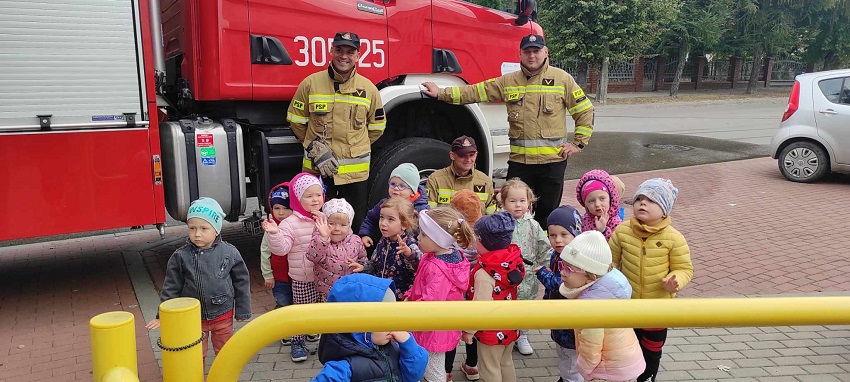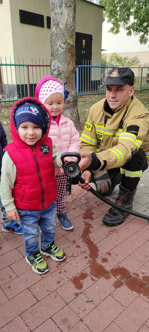 Dzięki uprzejmości strażaków dzieci miały także możliwość obejrzenia wyposażenia wozu strażackiego oraz zapoznały się z elementami ubioru strażaka.