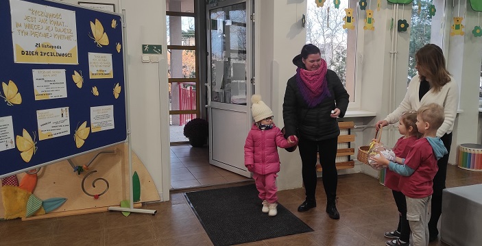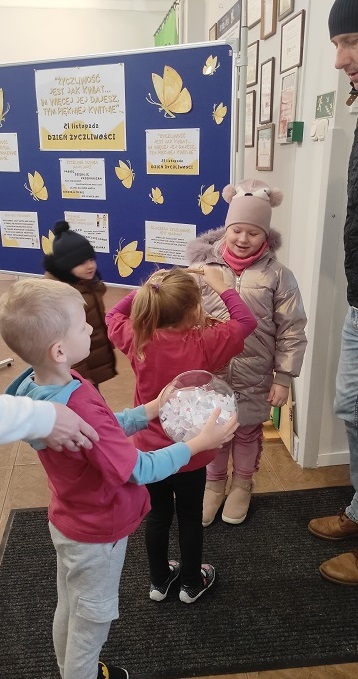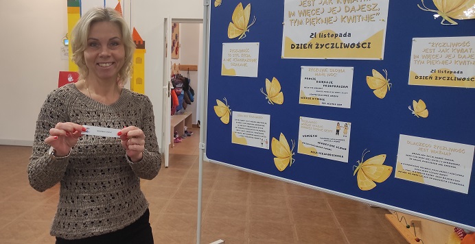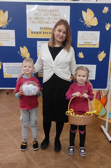 Poprzez celebrowanie tego święta chcieliśmy podkreślić, jak istotna dla każdego z nas jest wzajemna życzliwość, serdeczność, ciepłe i miłe słowo. Była to okazja do rozmów na temat jak być życzliwym i jak okazywać życzliwość w różnych sytuacjach społecznych m.in. w przedszkolu, w domu, czy w sytuacjach dnia codziennego. W tym dniu rodzice, dzieci oraz pracownicy witani byli w przedszkolu cukierkami oraz zabierali ze sobą „dobre słowo” wylosowane ze szklanej kuli.