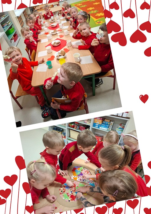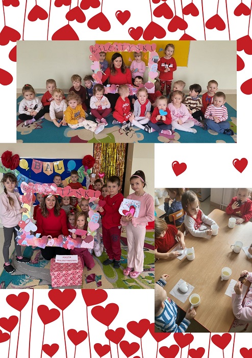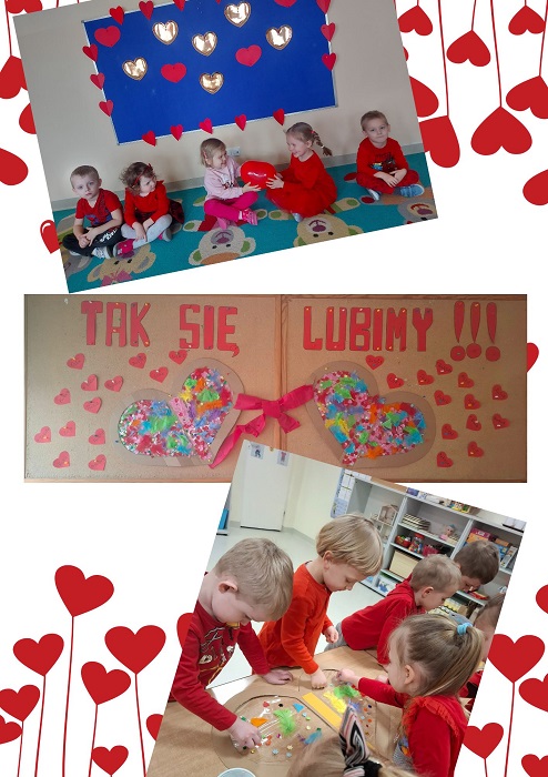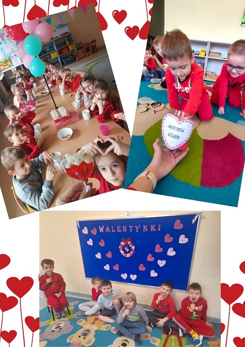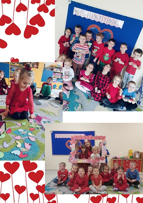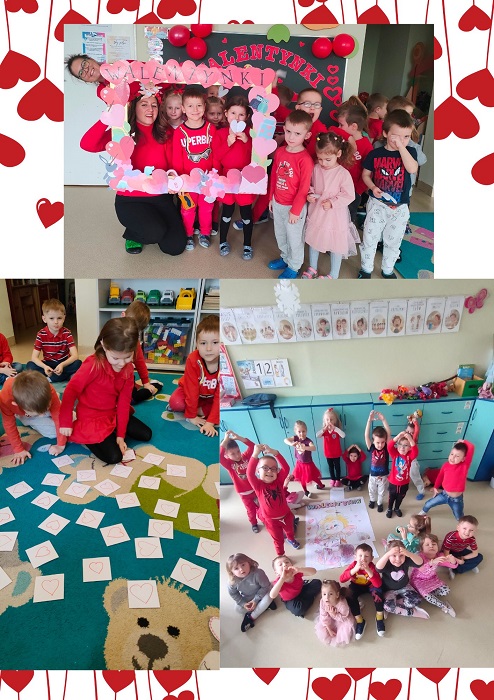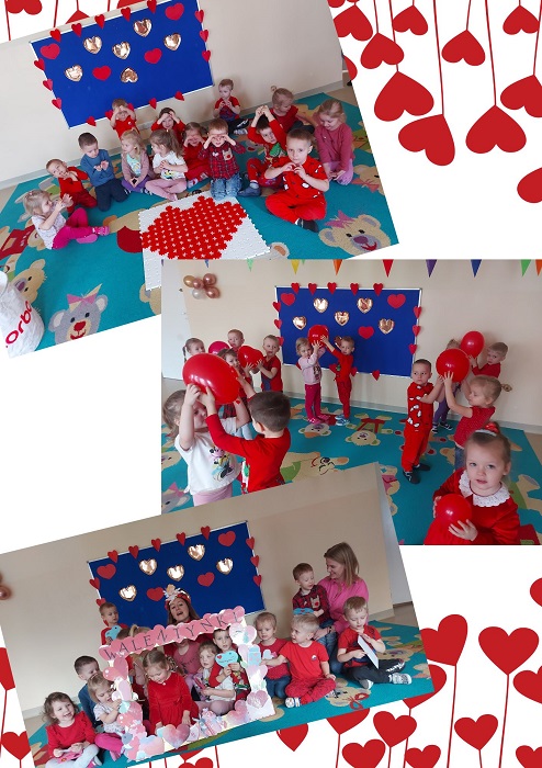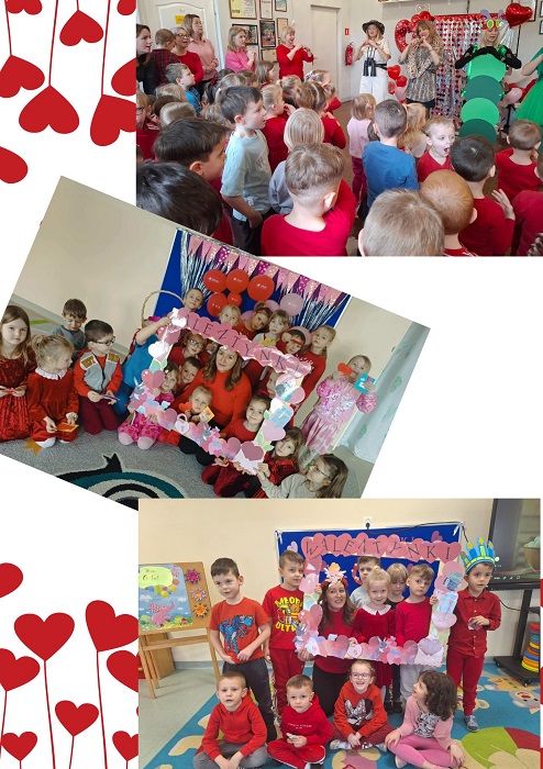 Tego dnia dzieci poznały też tradycje walentynkowe i wykonywały różne serduszkowe zadania. Nie zabrakło również zabaw ruchowych i tańców przy walentynkowych piosenkach.