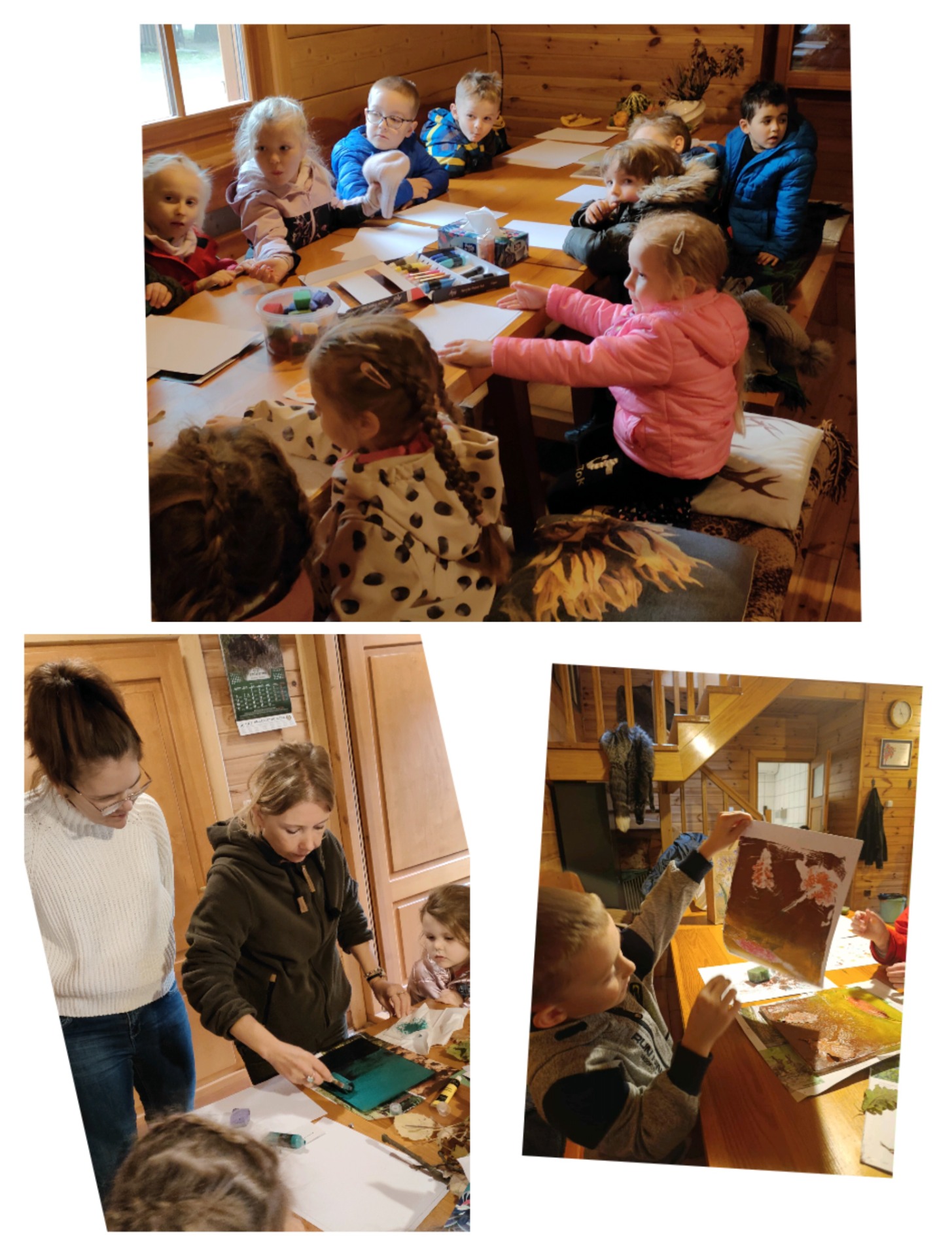 Jesienny las zachwycał nas swoimi ciepłymi kolorami – złotem liści, czerwienią jarzębiny i miękkim dywanem z igieł i szyszek pod stopami. Podczas warsztatów dzieci tworzyły kolorowe monotypie z liści, kwiatów i innych roślin – prawdziwe dzieła sztuki! A do tego… udało nam się znaleźć dużo jadalnych grzybów, co wywołało uśmiechy i wielkie podekscytowanie.