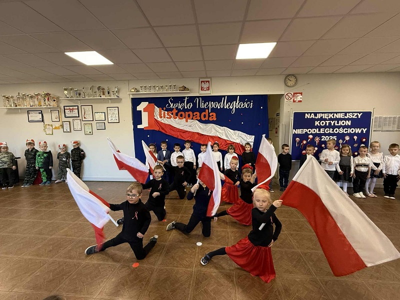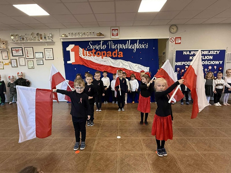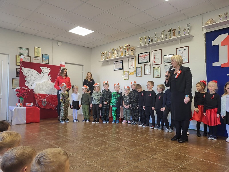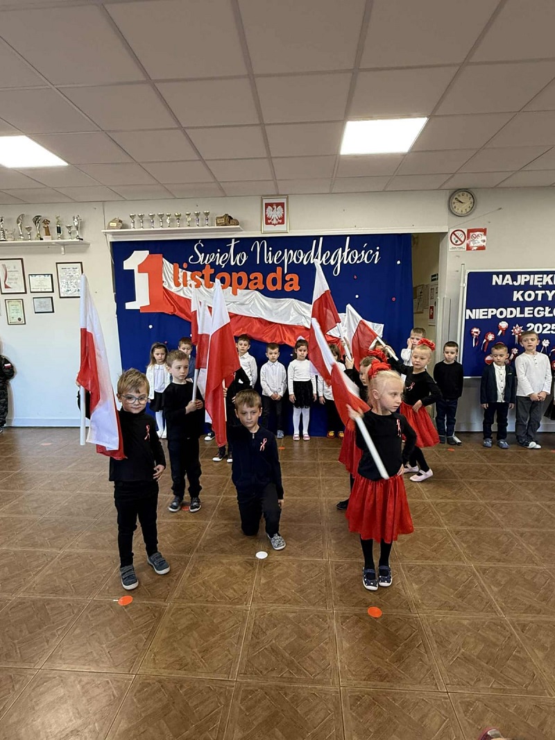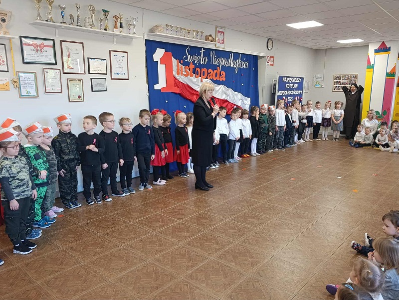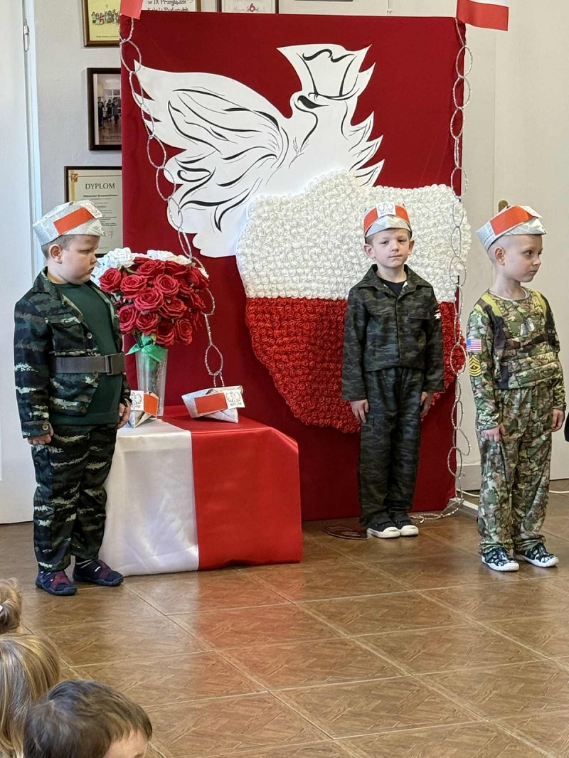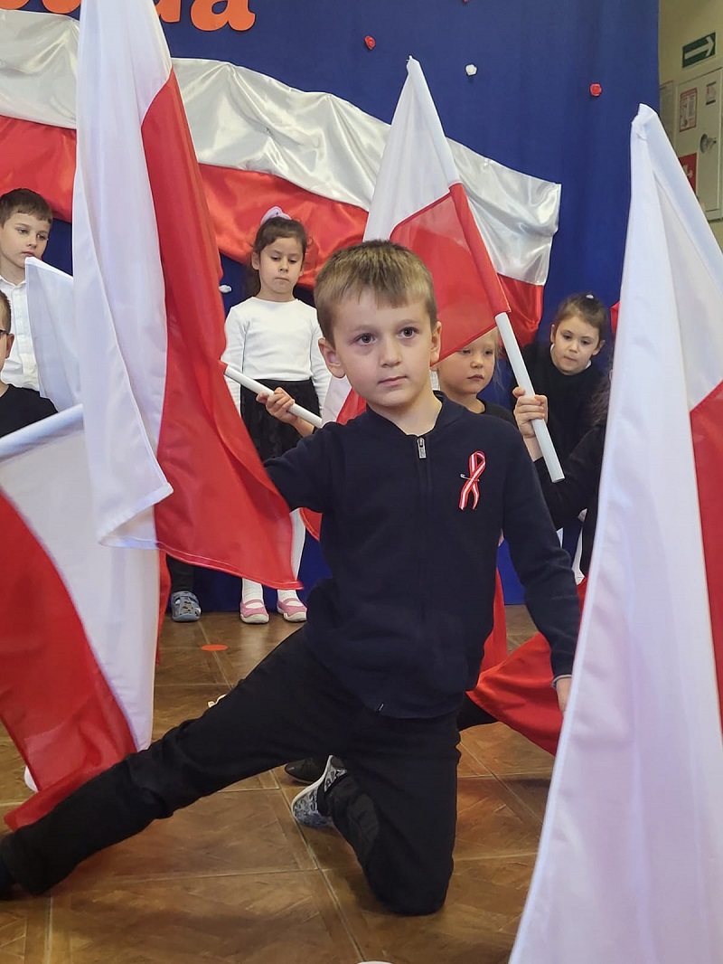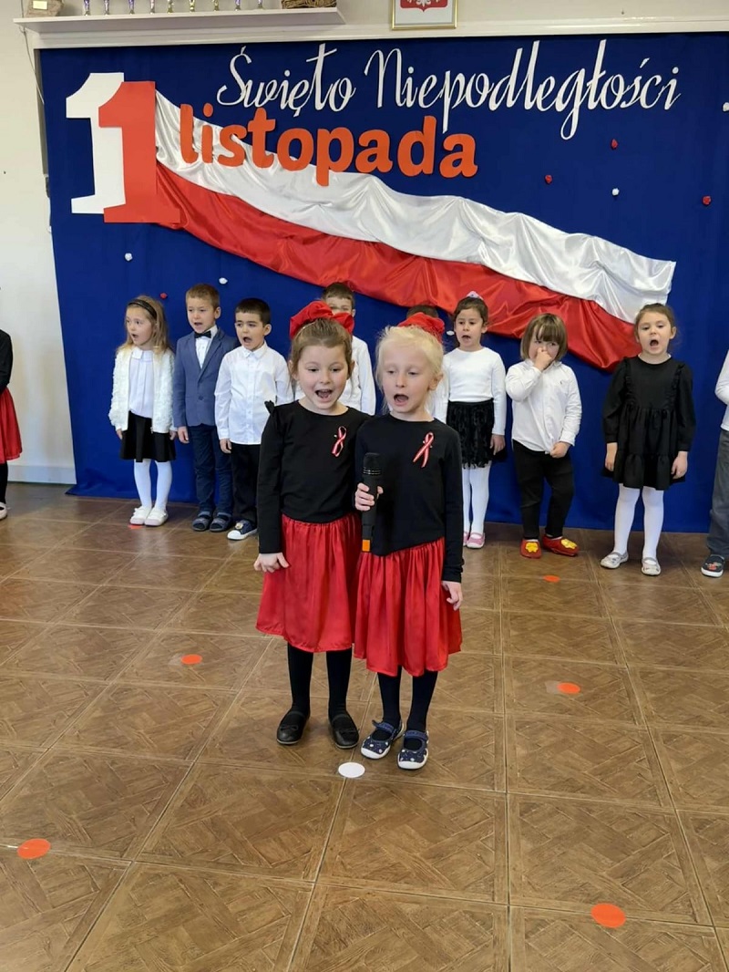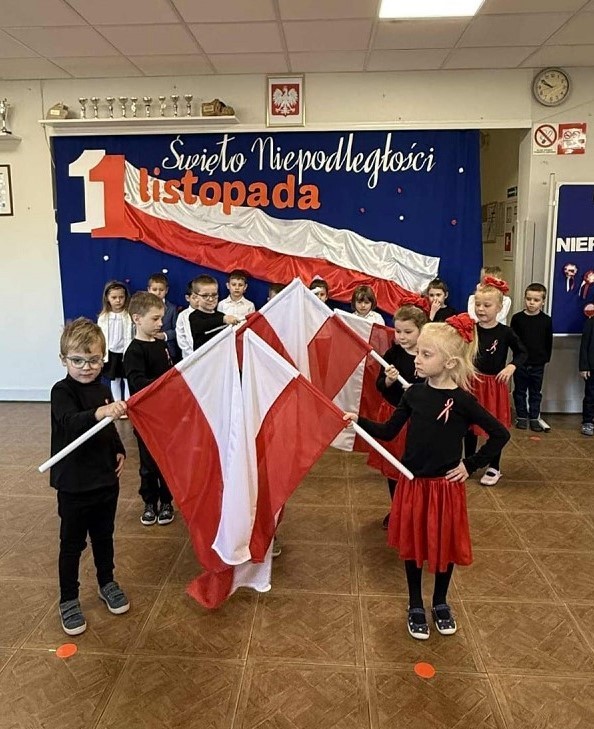 Dnia 7 listopada w naszym przedszkolu odbyła się wyjątkowa uroczystość z okazji Święta Niepodległości. Rozpoczęliśmy od wspólnego odśpiewania Mazurka Dąbrowskiego w ramach akcji MEN „Szkoła do Hymnu”. Następnie dzieci z grupy Bratki i Tulipanki z dumą zaprezentowały program artystyczny pod hasłem „Akademia dla Niepodległej”. Dzień ten był niezwykłą podróżą przez dzieje naszej Ojczyzny, któremu towarzyszyły pieśni patriotyczne, a taniec naszych małych artystów z biało-czerwonymi flagami stał się pięknym wyrazem radości i dumy z bycia Polakiem. Dzięki zaangażowaniu dzieci powstało wydarzenie, które nie tylko wzruszyło, ale także uczyło najmłodszych szacunku do tradycji i narodowych wartości. To spotkanie pokazało, że już od najmłodszych lat można w piękny i wyjątkowy sposób pielęgnować pamięć o ważnych wydarzeniach historycznych.