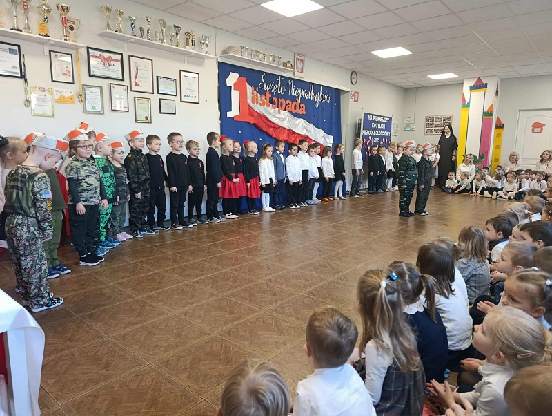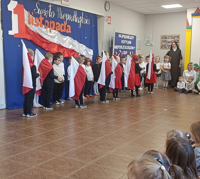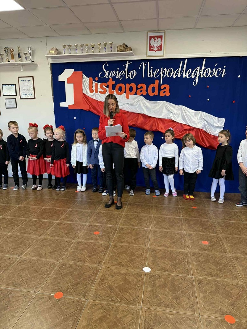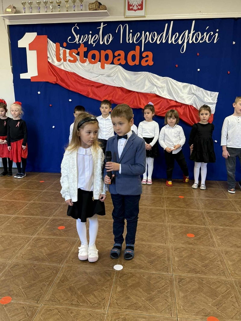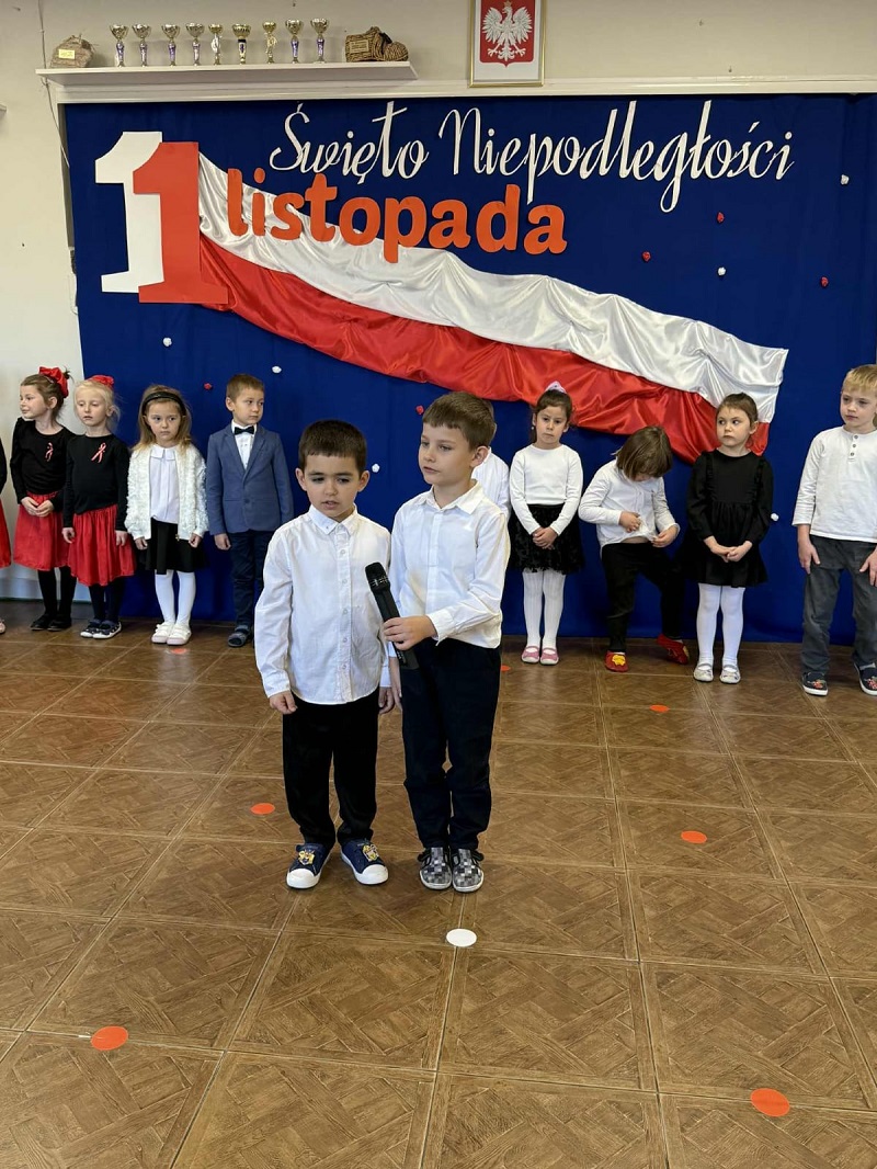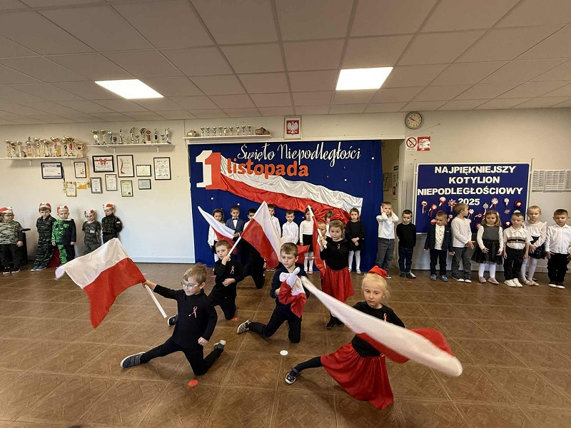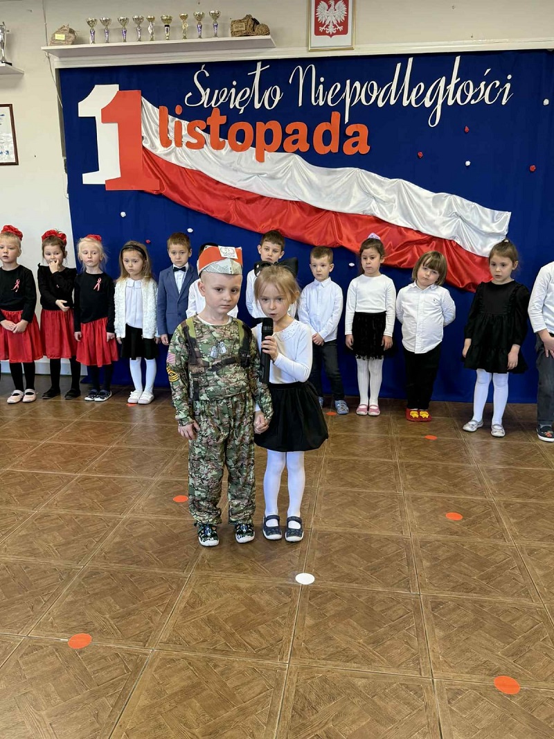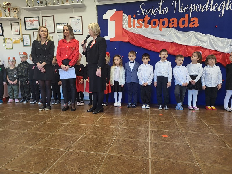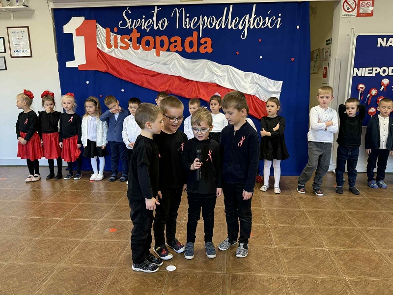 Dnia 7 listopada w naszym przedszkolu odbyła się wyjątkowa uroczystość z okazji Święta Niepodległości. Rozpoczęliśmy od wspólnego odśpiewania Mazurka Dąbrowskiego w ramach akcji MEN „Szkoła do Hymnu”. Następnie dzieci z grupy Bratki i Tulipanki z dumą zaprezentowały program artystyczny pod hasłem „Akademia dla Niepodległej”. Dzień ten był niezwykłą podróżą przez dzieje naszej Ojczyzny, któremu towarzyszyły pieśni patriotyczne, a taniec naszych małych artystów z biało-czerwonymi flagami stał się pięknym wyrazem radości i dumy z bycia Polakiem. Dzięki zaangażowaniu dzieci powstało wydarzenie, które nie tylko wzruszyło, ale także uczyło najmłodszych szacunku do tradycji i narodowych wartości. To spotkanie pokazało, że już od najmłodszych lat można w piękny i wyjątkowy sposób pielęgnować pamięć o ważnych wydarzeniach historycznych.